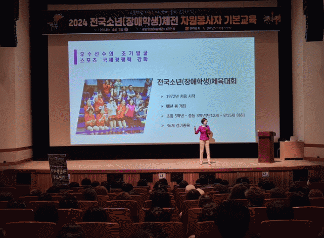 시에 따르면, 지난 5일 광양문화예술회관에서 전라남도자원봉사센터 주관으로 2024 전국소년(장애학생)체전 전남 동부권(광양, 여수, 고흥, 곡성, 화순) 자원봉사자 200명을 대상으로 기본교육을 진행했다.