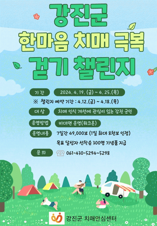 모바일 걷기 플랫폼인 '워크온(Walkon)'앱을 통해 진행되며, 강진군민이면 누구나 참여가 가능하다.