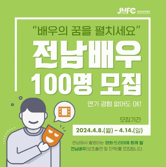 오는 14일까지 모집하며 전남영상위원회 누리집통해 지원하면 된다.
