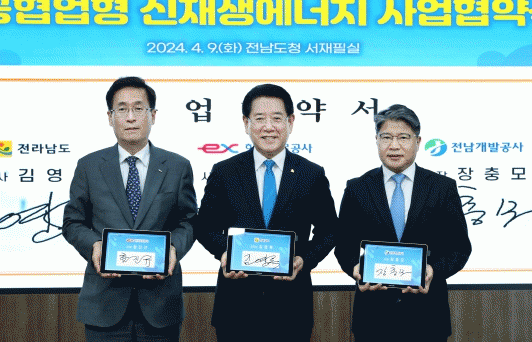 협약식에는 김영록 전남도지사, 함진규 한국도로공사 사장, 장충모 전남개발공사 사장이 참석해 각종 고속도로 부지와 시설을 활용한 다양한 신재생에너지 확대 방안 등을 논의했다.