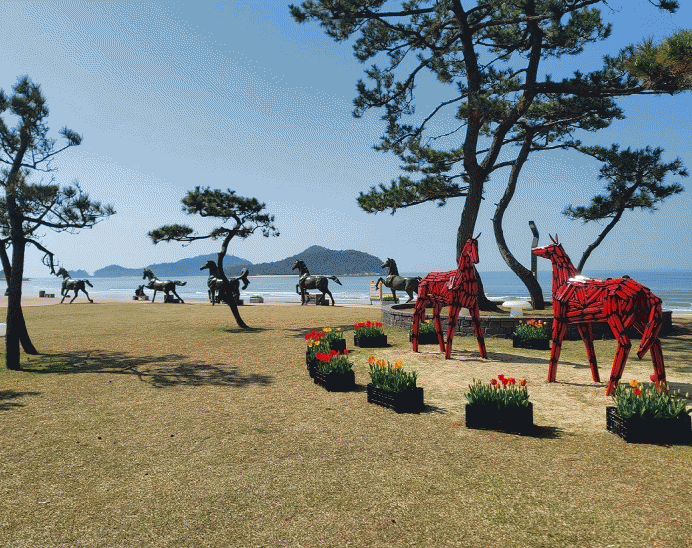 작품이 설치된 대광해변은 썰물 때 해변 면적이 100만 평에 달해 승마에 가장 이상적인 환경으로 말을 마음껏 달릴 수 있어 승마 동호인에게 인기를 끌고 있다.