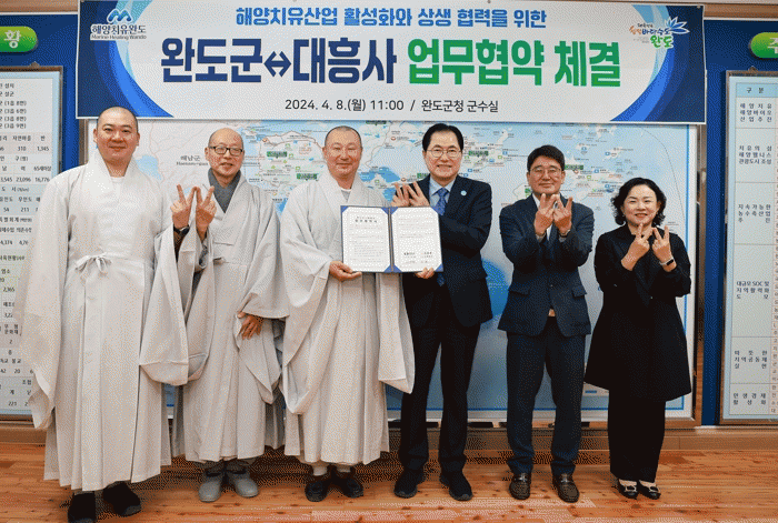 대흥사 주지 법상 스님은 “완도 해양치유산업과 불교 발전을 위해 맞손을 잡은 만큼 지속적으로 교류·협력하여 양 기관이 시너지 효과를 얻을 수 있길 바란다”라고 말했다.
