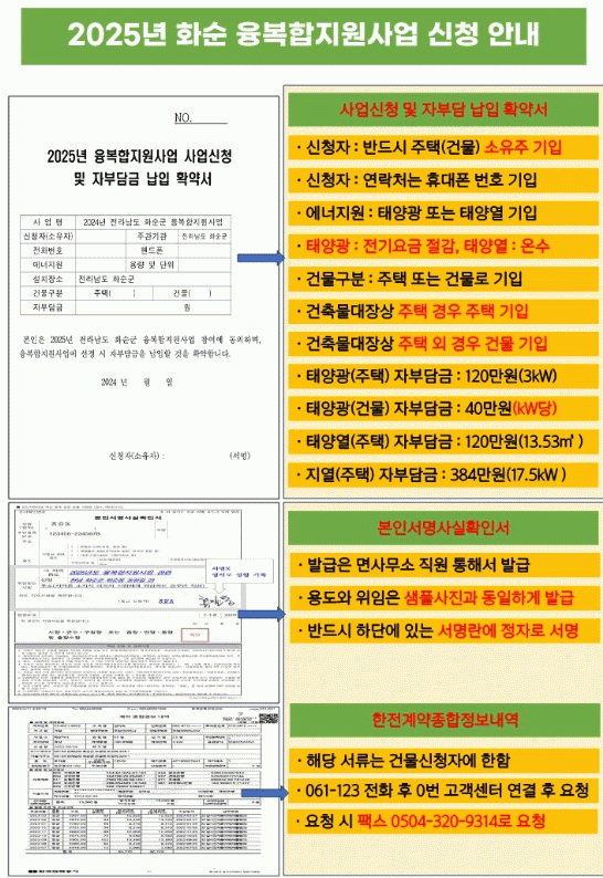 군 관계자는 “전기료 상승에 대한 부담이 커지는 시기에 비용 절감을 위한 재생에너지 설치에 주민들의 관심도가 그 어느 때보다 높다.”라며 “2025년도 본 사업이 꼭 추진되어 군민들의 가계 부담을 줄일 수 있도록 공모 준비에 최선을 다하겠다.”라고 밝혔다.