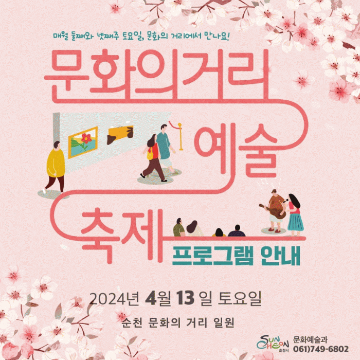 시 관계자는 “문화의거리 예술축제 상설화로 순천을 찾는 관광객과 시민들이 문화의 거리 등 원도심에서 순천을 충분히 즐기고 느끼는 계기가 되었으면 한다”고 말했다.