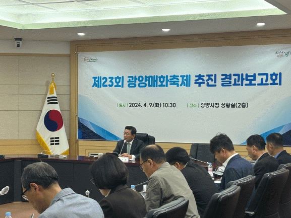 이번 회의는 제23회 광양매화축제 개최 성과를 공유하고 개선방안을 논의하기 위한 자리로 축제 성과를 보고 받고 각종 민원 및 건의사항, 개선사항 등을 공유하고 향후 발전 방향을 모색하는 등 해결방안을 함께 고민했다.