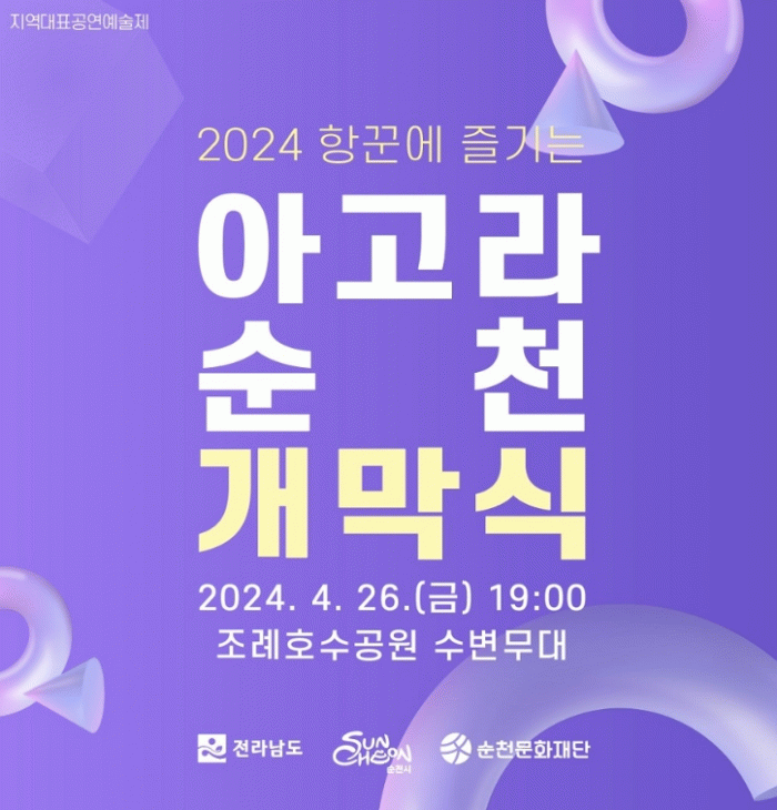 순천문화재단 관계자는 “2024 아고라 순천은 문화예술 사각지대의 문화향유 기회 제공을 위해 찾아가는 아고라 공연 등을 통해 다양한 세대의 관객을 만날 예정이다”며, “순천시 곳곳에서 진행되는 아고라 순천 공연에 많은 관심과 참여 바란다”고 밝혔다.