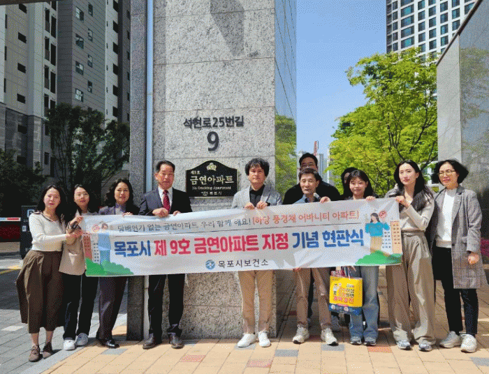 ‘금연아파트’는 목포시가 지역사회 내 금연 분위기를 조성하고 간접흡연 피해를 예방하고자 거주 주민의 과반수 이상 동의할 때 지정하며, 금연구역 지정 및 입주민 대상 이동급연클리닉 운영 등 각종 금연 서비스도 제공된다.