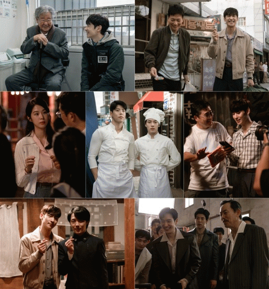 먼저, 현장 곳곳을 환히 밝히는 이제훈의 미소가 시선을 사로잡는다. 특히 1회에서 노년 박영한(최불암 분)의 손자 ‘박준서’로 1인 2역을 맡기도 한 이제훈이 최불암과 나란히 웃는 모습은 새롭게 기록될 역사를 예고하며 가슴을 두근거리게 한다.
