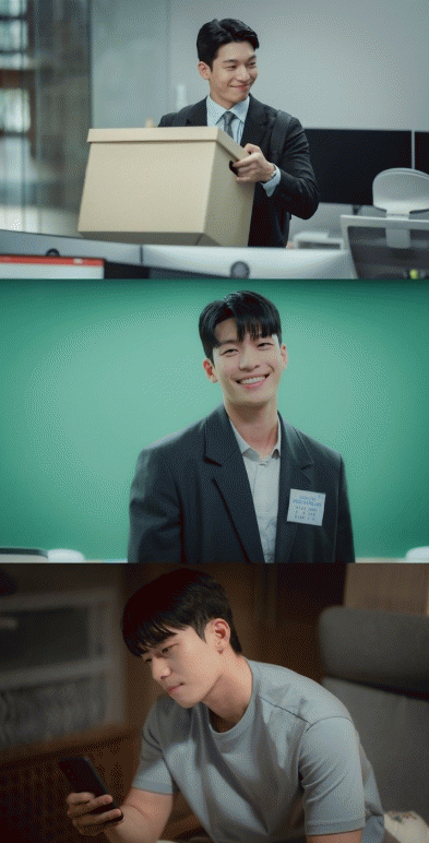 이어진 사진 속 ‘대치 체이스’ 신임 강사 시험장에서 포착된 이준호의 모습이 흥미롭다. 공개채용 수험표를 달고 칠판 앞에 선 이준호의 환한 미소가 설렘을 더한다.