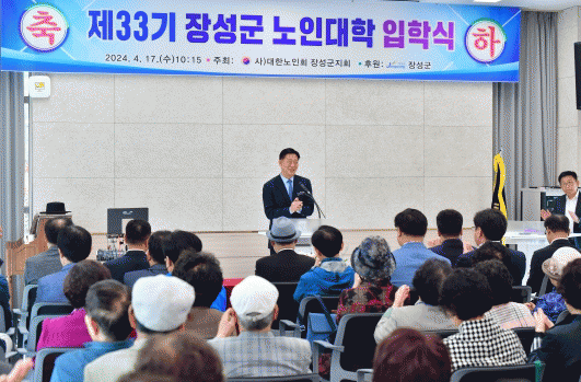 김한종 장성군수는 “배움에 대한 열정으로 새로운 도전에 나선 제33기 신입생 여러분께 존경과 응원의 박수를 보낸다”면서 “군도 활기차고 행복한 노후를 보낼 수 있도록 지원을 아끼지 않겠다”고 말했다.