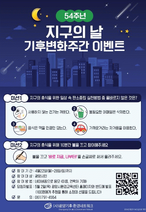 이벤트는 네이버폼을 통해 응모 가능하며, 당첨자는 5월 2일 광양시환경교육센터 홈페이지에 공지될 예정이다.