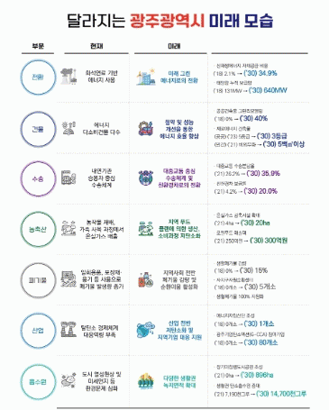 이는 국가 온실가스배출 감축 목표 2030년 40%보다 강화된 것으로, 광주시의 탄소중립·녹색성장에 대한 의지와 정책 방향을 확고히 했다.