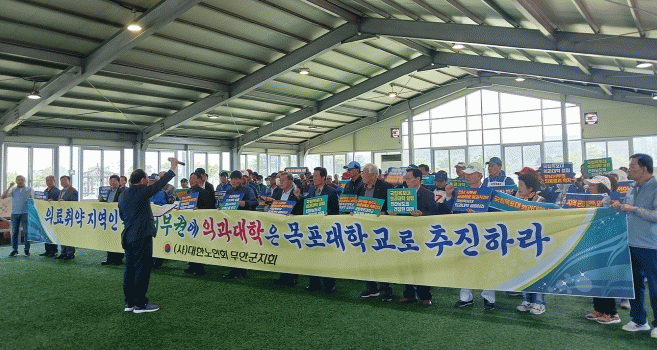 한편 경기 전 (사)대한노인회 무안군지회는 전남 서남권의 열악한 의료 문제 해결을 촉구하며 목포대에 의대 신설을 주장하는 성명서를 발표했다.