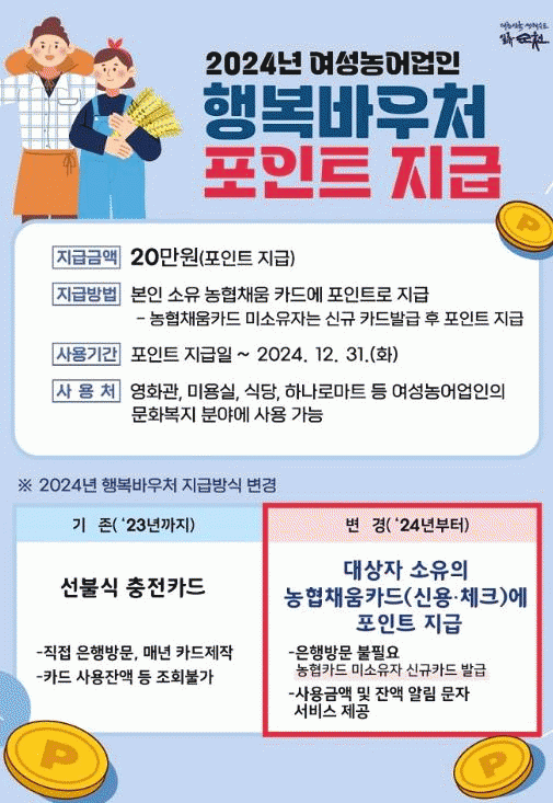 시는 매년 선불형 기프트 카드를 지급했던 방식에서 올해부터는 본인 명의 농협카드에 포인트 충전 방식으로 지급 방식을 변경한다.