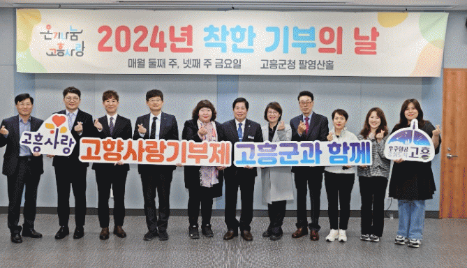 한편, 온기나눔 고흥사랑 착한 기부의 날은 작년부터 시행된 고향사랑기부제와 전 국민 온기나눔 캠페인을 연계해 기부자의 편의를 도모하기 위해 올해 2월부터 매월 둘째 주와 넷째 주에 운영되고 있다.