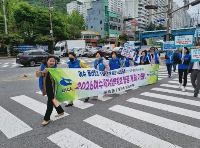 이후 실천본부는 둔덕동 11호 광장에서 2026여수세계섬박람회 성공개최와 교통질서확립, 불법투기 근절을 위한 캠페인을 펼치며 시민들의 동참을 독려했다.