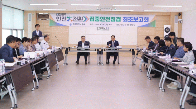 동구는 지난 16일 구청 3층 상황실에서 임택 구청장 주재로 ‘2024년 대한민국 안전대전환 집중안전점검 최초보고회’를 갖고, 재난 예방 및 안전성 확보를 위한 부서별 점검 추진계획을 최종 점검했다.