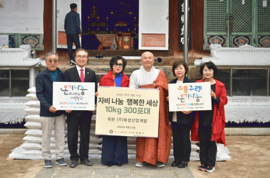 천은사는 이번에 불자 기업 주식회사 복성산업개발로부터 후원받은 백미 300포 중 200포를 군에 기탁했다.