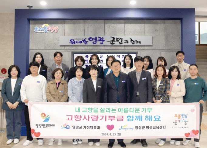 이번 상호 기부는 영광군 가정행복과와 장성군 평생교육센터 직원 40여 명이 고향사랑기부제의 성공적인 정착과 상생 발전을 응원하며 기관 당 200만 원을 상호 기부해 지역 발전에 힘을 모았다.