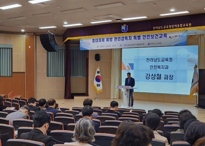 공·사립학교 및 기관의 관리감독자 800여 명을 대상으로 한 이번 교육은 학교 안전사고에 대한 경각심을 고취하고 유사 재해가 발생하지 않도록 관리감독자의 안전보건 역량강화 및 안전보건관리체계 강화를 위해 추진한다.