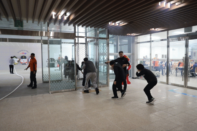 체험관 전체 직원이 참여한 이번 훈련은 구내식당 내부에서 화재가 발생한 상황을 가정한 모의훈련으로 진행됐다.