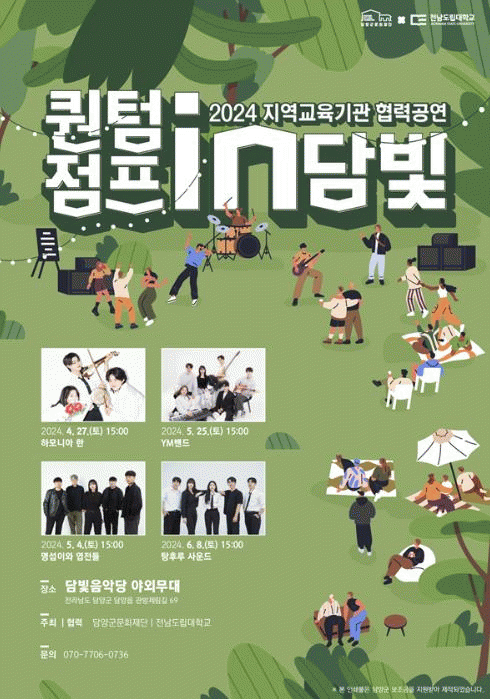 공연은 무료이며, 자세한 사항은 담양군문화재단 예술진흥팀으로 문의하면 된다.