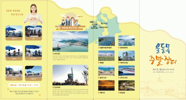특히 이번 개장식에는 가수 김상희, 박우철, 최영철 등의 축하공연과 함께 다양한 볼거리를 제공하고 가상현실(VR) 사진찍기 등 즐길거리도 함께 준비해 울돌목 주말장터에 활기를 돋울 것으로 기대한다.