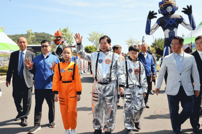 인류의 위대한 비상 ‘지구인에서 우주인으로’라는 슬로건을 내건 이번 축제는 공영민 군수와 지역민, 그리고 미래 주인공인 어린이가 하나 돼 우주를 향한 힘찬 걸음을 내딛는 입장 퍼포먼스로 개막식을 대신하며 우주촌 축제의 문을 활짝 열었다.