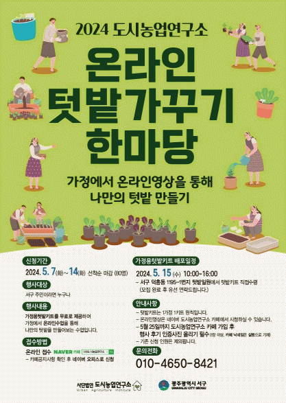정소현 경제과장은 “가정용 텃밭이 일상 속 문화로 자리 잡아 주민들이 친환경 먹거리를 직접 재배하고 식물을 키우는 활동을 통해 정서적 안정감에 기여할 수 있도록 지원을 아끼지 않겠다”고 말했다.