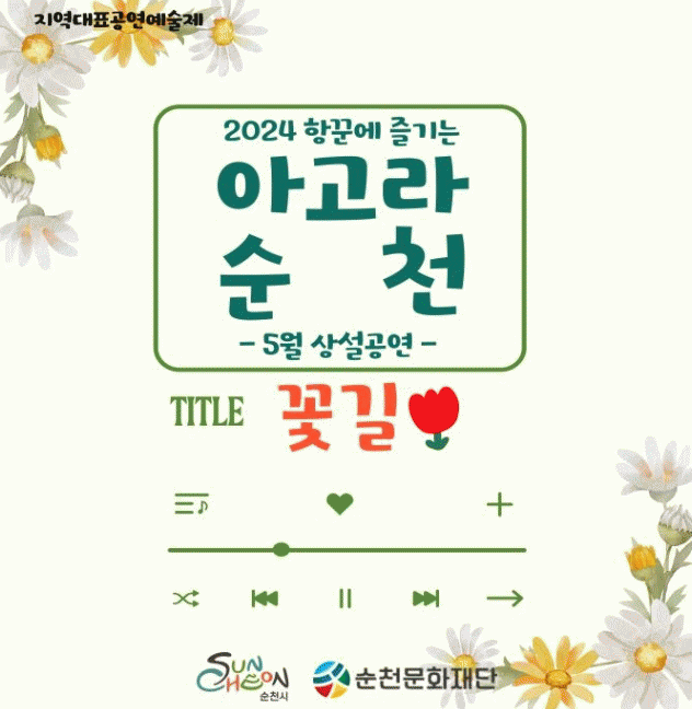 자세한 공연 일정은 순천문화재단 누리집과 2024 아고라 순천 네이버 밴드를 통해 확인 가능하며, 문의는 예술진흥팀으로 하면 된다.