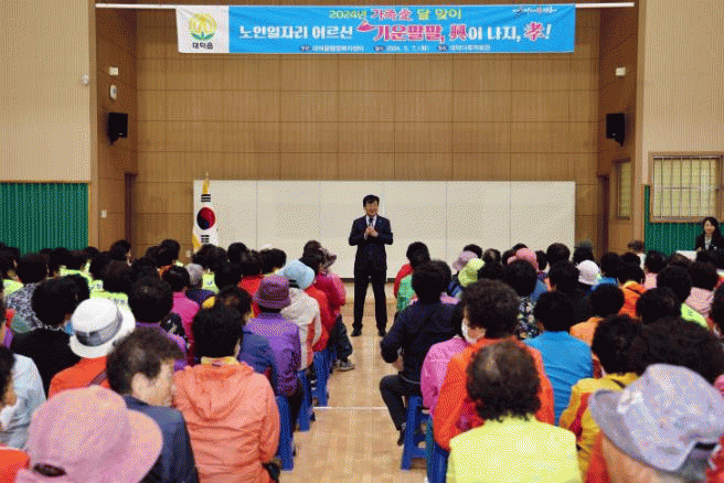 대덕읍 복지회관에서 진행된 이날 행사는 노인일자리 참여자 어르신 카네이션 달아드리기, 레크리에이션, 선물 꾸러미 증정 등의 시간을 가졌다.
