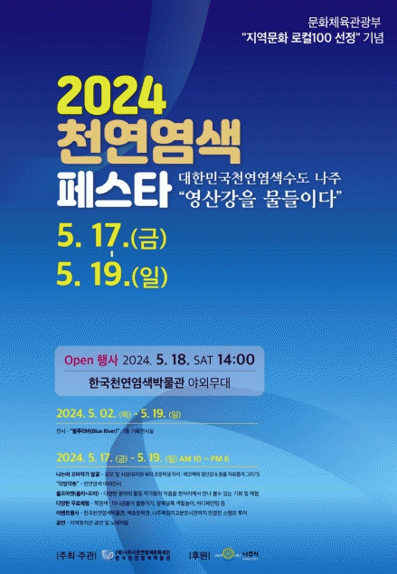 (재)나주시천연염색문화재단은 이달 17일부터 19일까지 3일 간 한국천연염색박물관 일원에서 ‘2024 천연염색 페스타’를 개최한다고 7일 밝혔다.