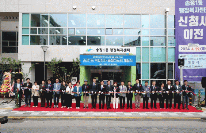 송정1동 행정복지센터는 지난달 29일부터 신청사에서 업무를 시작했으며, 앞으로 가족센터, 청소년문화의 집, 국민체육센터 등이 차례로 입주해 주민에게 맞춤형 문화?복지 서비스를 제공할 예정이다.