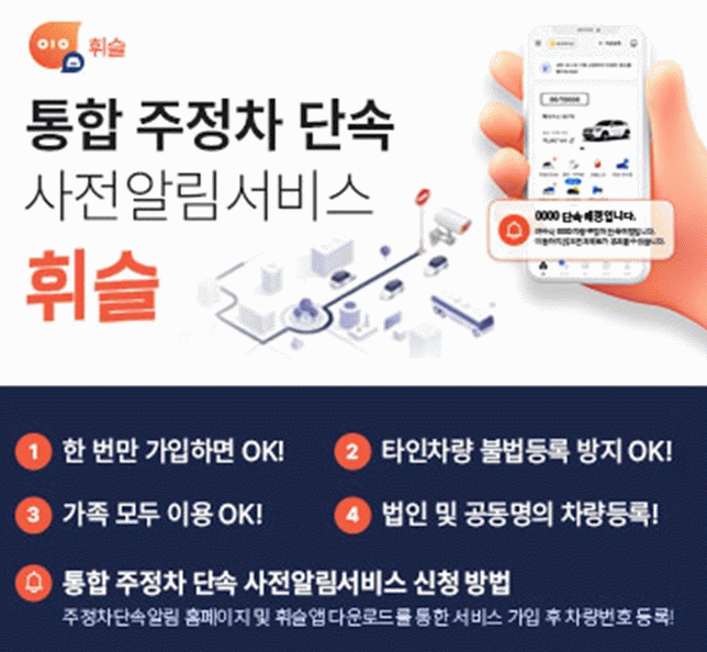 시 관계자는 “불법주정차 단속에 적발되는 것을 예방할 수 있는 최선의 방법인 만큼 운전자들의 적극적인 가입을 당부드린다”고 밝혔다.