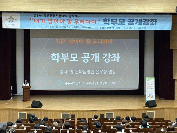 이번 학부모 대상 공개강좌는 나주시보건소가 추진중인 아동 청소년 정신건강증진사업의 일환으로, 자녀의 정신건강 이해와 성장에 도움이 되는 정보를 제공하는 데 포커스를 맞췄다.