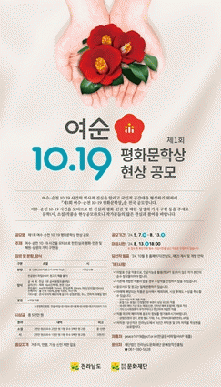 전남도 관계자는 “여순사건에 따른 아픈 상처를 문학작품으로 승화해 역사적 진실을 바로 알리고, 국민적 공감대를 형성하기 위해 10·19평화문학상을 제정했다”며 “우수 작가 작품 공모로 여순사건이 과거의 아픔에서 벗어나 평화와 희망의 메시지를 전달할 수 있길 기대한다”고 말했다.