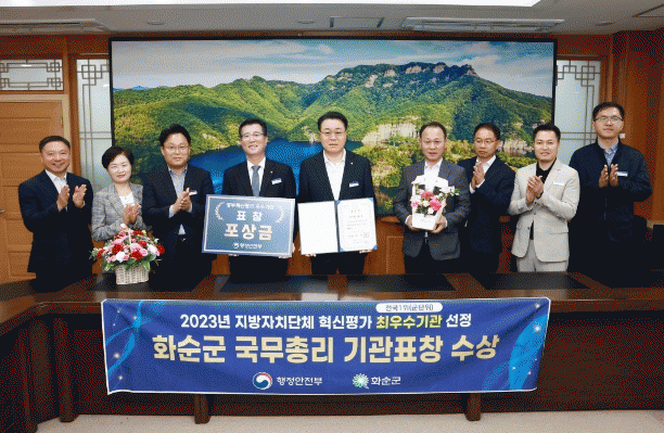 화순군은 2023년 지자체 혁신평가에서 전국 82개 군(郡) 중에서 1위를 차지해 최우수기관으로 선정됐으며, 2022년(6위)에 이어 2년 연속 우수기관 선정의 영예를 안았다.
