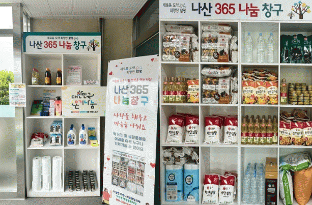 ‘이웃이 이웃을 함께 돌보자’라는 취지로 시작된 ‘나산 365 나눔창구’는 365 나눔창구는 주민 누구나 자유롭게 식품과 물품 등을 기부하고, 필요한 이웃이 가져갈 수 있도록 하는 온정 나눔의 장이다.