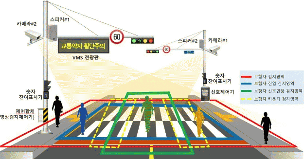 보행신호 자동연장시스템은 횡단보도에서 보행신호 시간 내에 도로를 횡단하지 못한 보행자를 인식해 허용된 시간(5 부터 10초) 범위 내에서 보행신호 시간을 자동으로 연장해주는 시스템으로, 장애인과 어린이, 노약자 등 교통 약자의 안전한 횡단을 지원하기 위해 마련됐다.