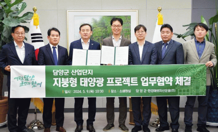 이병노 담양군수는 “이번 협약을 통해 입주기업의 지붕임대를 통한 부가 수익 창출과 더불어 관내 업체 공사 수주를 통한 일자리 창출과 지역경제 활성화를 기대한다”라며 “원활한 사업추진을 위해 인허가 신속 처리 등 행정적 지원에 최선을 다하겠다”라고 말했다.