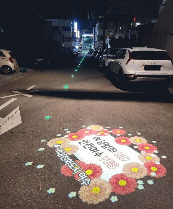 시는 지난 2021년부터 어두운 골목길, 여성 1인 가구 밀집지역 등에 ▲밤에 빛을 내는 바닥조명인 솔라표지병과 ▲바닥에 특정 로고나 문구를 투영해 주는 LED장치인 로고젝터를 설치하고 있다.