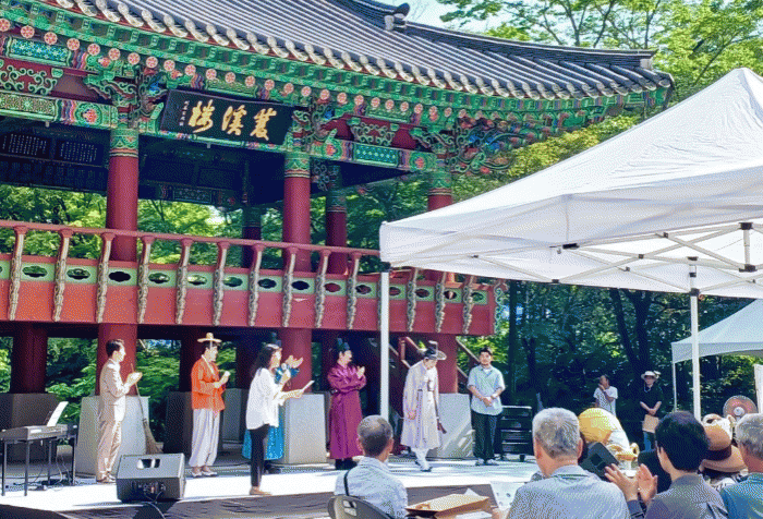 이어지는 음악극 순서도 흥미롭다. 보부상과 스님이 무대에 올라 쌍계루에 얽힌 이야기를 극 형식으로 풀어낸다. 여기에 바리톤, 테너 두 명의 성악가가 첼로와 바이올린 선율에 맞춰 문인들의 삶을 노래한다.