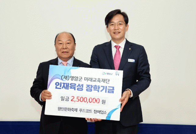 3월 영암군 왕인박사유적지 일대에서 열린 ‘2024 왕인문화축제’의 푸드코트 참여 8개소 대표들이, 7일 장학금 250만원을 (재)영암군미래교육재단에 기탁했다.