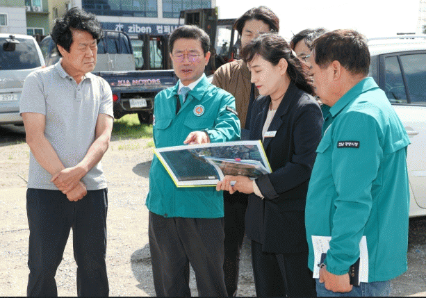 먼저 태인 연관단지 내 지원시설단지 주차장 조성 건의 현장을 찾아 2개 후보지의 면적 및 예상 주차 면수, 추정 사업비, 주변 교통량 등에 대한 자세한 보고를 받고 건의한 시민과 함께 현장을 둘러봤다.