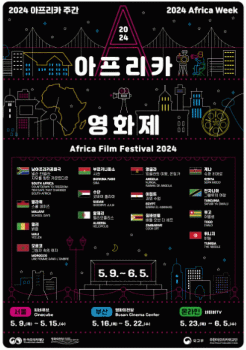 한·아프리카재단과 영화의전당이 주최하고, 외교부와 주한아프리카외교단(AGA)이 후원하는 이번 영화제는 5월 9일(목) 개막식을 시작으로 10일(금)부터 15(수)까지 서울 씨네큐브 광화문과 5월 16(목)부터 5월 22일(수)까지 부산 영화의전당에서 개최된다.