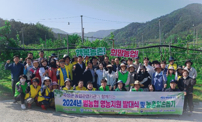 이날 행사에는 곡성군청, 곡성군농업기술센터, 한국농어촌공사곡성지사, 국립농산물품질관리원곡성사무소, 관내 농축협 임직원 및 고향주부모임 회원 등 40여명이 참여하여 영농지원 발대식과 함께 올 한해 풍년농사를 기원하고 본격적인 영농철을 맞이해 농촌일손돕기 총력지원 및 참여 분위기 확산을 위한 결의를 다짐하고 오곡면 소재 사과농장에서 사과 열매 솎기작업을 실시하였다.
