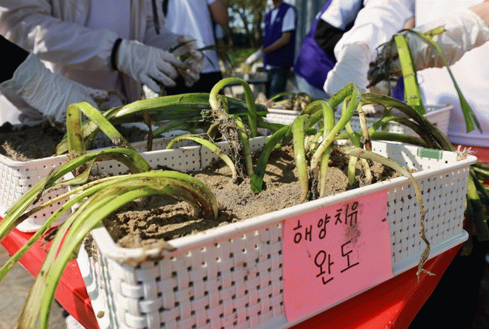 이에 이날 블루카본 소재인 잘피 2,000주를 참석자들이 직접 만들어 신지면 동고리 해역에 이식하고, 인근 해역의 해양쓰레기를 수거하는 정화 활동도 전개했다.