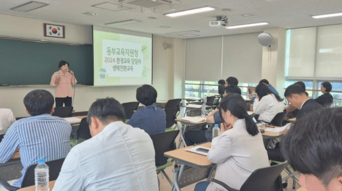 이번 교육은 올해 동부교육지원청에서 추진하고 있는 여러 생태전환교육 지원 사업과 지역 사회 연계 사업 등을 소개하고 학교 현장에서 생태 전환교육에 적극 참여할 수 있도록 추진됐다.