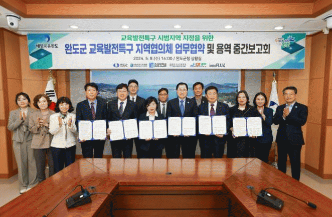 이날 협약식과 함께 완도군 교육발전특구 기본 계획 수립 연구 용역 중간 보고회도 진행됐다.