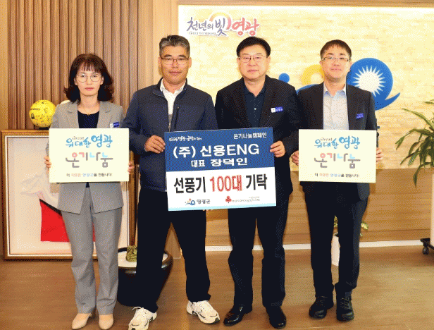 8년 전 고향인 백수읍으로 귀향한 장덕인 대표는 에어컨 설치 및 설비 관련 업체인 ㈜신용ENG(LG전자 설치지정점)를 운영하고 있으며, 냉·난방기가 없거나 오래되고 고장 나서 어려움을 겪고 있는 이웃을 위해 3년째 선풍기를 기탁해오고 있다.